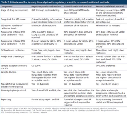 Ñо¿¼¶ÑéÖ¤µÄÑо¿Ç°ÑéÖ¤ºÍÑо¿ÖÐÑùÌìÖ°ÎöµÄÄ¿±ê½ÓÊܱê×¼Ó¦¸Ã±È»ùÓÚ¿ÆÑ§¼¶»ò¼à¹Ü¼¶ÑéÖ¤£¨ÀýÈçÆ«²î£¾20%ºÍ%CV£¾20%£©¸üΪ¿íËÉ¡£¸ü¿í·ºµÄ׼ȷÐԺ;«ÃܶȽÓÊܱê×¼¿ÉÓÃÓÚ¶ÔSTDsµÄÆÀ¹À£¨ÀýÈç30%Æ«²î£¬ÔÚLLOQºÍULOQ¿ÉÒÔÓÐ40%Æ«²î£©¡£ÔÚÁíÒ»·½Ã棬Èç¹ûSTDµÄÌåÏÖ˵Ã÷¿ÉÒÔµÖ´ï¸üÑϸñµÄ½ÓÊܱê×¼£¬ÔòÓ¦¸ÃʹÓüà¹Ü¼¶»ò¿ÆÑ§¼¶ÑéÖ¤ÖнÓÄɵÄÄ¿±ê½ÓÊܱê×¼»òÕ߯äËû¸üÑϸñµ«ºÏÀíµÄ½ÓÊܱê×¼¡£
