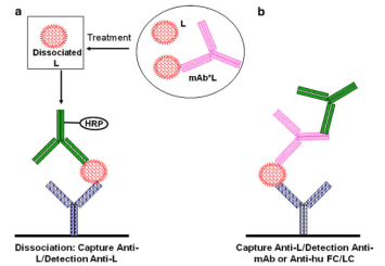 ËäÈ»¿ÉÒÔÉè¼ÆLBAÓÃÀ´ÕÉÁ¿mAbfree»òmAbtotal£¬µ«ÊÜÊÔ¼ÁÏÞÖÆ¡¢Ñù±¾Ï¡Ê͵ÈÓ°Ï죬²¢²»¿ÉÈ·¶¨¸ÃÒªÁìÊÇ·ñ½ö½ö²â¶¨mAbfree¡£Òò´Ë£¬¿ÉÒÔ½ÓÄɲⶨmAbtotalµÄÕ½ÂÔ¡£mAbtotalºÍmAbfreeµÄÆÊÎöÒªÁì¼û±í6£¬µä·¶µÄELISA¼ì²â»¨Ñù¼ûͼ2¡£