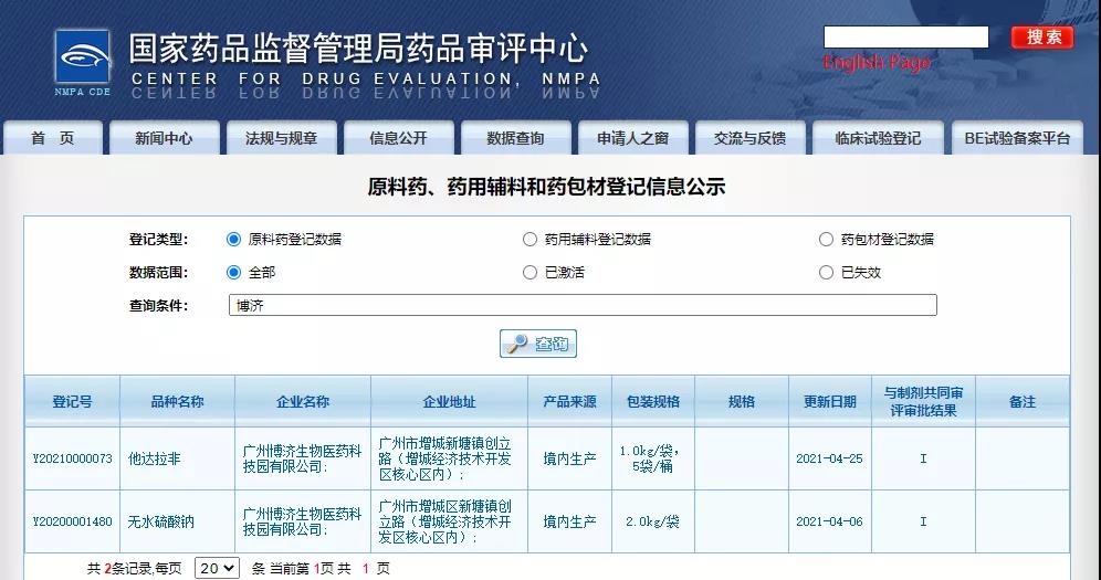 ½üÈÕ£¬1066VIPÍþÄá˹ҽҩ×Ó¹«Ë¾¹ãÖÝ1066VIPÍþÄá˹ÉúÎïÒ½Ò©¿Æ¼¼Ô°ÓÐÏÞ¹«Ë¾×ÔÖ÷¿ª·¢µÄËû´ïÀ·ÇÔÁÏÒ©£¨¹ÒºÅºÅY20210000073£©ºÍ×ÔÖ÷¿ª·¢µÄÎÞË®ÁòËáÄÆÔÁÏÒ©£¨¹ÒºÅºÅY20200001480£©ÔÚ¹ú¼ÒÒ©Æ·¼à¶½ÖÎÀí¾ÖÀֳɱ¸°¸¹ÒºÅ¡£