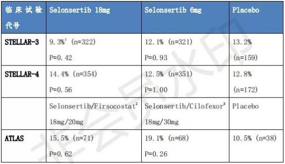 ÔÚÁªÊÊÓÃҩʵÑéÖУ¬Gilead 12Ô·ÝÓÖÐû²¼ÁËÒ»¸öÃûΪATLASµÄ2ÆÚÁÙ´²½á¹û¡£Òź¶µÄÊÇselonsertibÁªºÏÖÎÁƵÄÁÆÐ§Ò²Ã»ÓÐÌåÏÖ³öÀ´¡£¸ÃÑо¿ÕÐļ392ÃûÑÏÖØ¸ÎÏËά»¯£¨F3-F4£©µÄNASH»¼Õߣ¬±È½ÏACCÒÖÖÆ¼Áfirsocostat £¨20mg£©£¬FXR¼¤¶¯¼Ácilofexor£¨30mg£©£¬selonsertib£¨18mg£©ÒÔ¼°ÈýÕßÖ®¼äÁ½Á½×éºÏÓëο½å¼ÁÏà±È¶Ô¸ÄÉÆÏËά»¯µÄÓ°Ïì¡£ÓÃÒ©48ÖÜʱ£¬selonsertib/firsocostat×éºÏÓÐ15.5%£¨p=0.62vs.placebo£©NASHÎÞ¶ñ»¯ºÍÏËά»¯¸ÄÉÆÖÁÉÙ1¼¶µÄ²¡È˱ÈÀý£¬selonsertib/cilofexor×éºÏÓÐ19.1% £¨p=0.26£©£¬¶øÎ¿½å¼Á×éΪ10.5%¡£cilofexor/firsocostat×éºÏÕâÒ»ÊýֵΪ20.9%£¨p=0.17£©£¬µ«ÕâÒ»×éºÏÔÚһЩ¶þ¼¶ÖÕµãÉÏÈ¡µÃÁËÓëο½å¼Á×éͳ¼ÆÑ§ÒâÒåµÄ²î±ð¡£ÔÚËæºó¹«Ë¾Ðû²¼µÄ¸ü¶àÁªÓÃÁÙ´²½á¹ûÖУ¬cilofexor/firsocostatµÄ×éºÏȷʵÄÜÈ¡µÃ²»ÉÙ»ý¼«µÄÁÙ´²½á¹û¡£