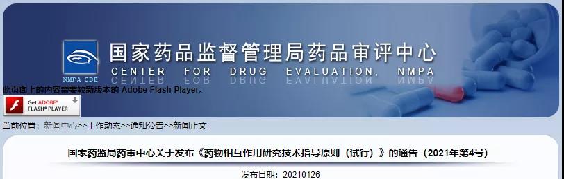 ½ñÌ죨1ÔÂ26ÈÕ£©£¬CDE¹ÙÍøÐû²¼ÁË¡¶Ò©ÎïÏ໥×÷ÓÃÑо¿¼¼ÊõÖ¸µ¼Ô­Ôò£¨ÊÔÐУ©¡·¡£¸ÃÎļþº­¸ÇÁ˸ÅÊö¡¢Ò©ÎïÏ໥×÷ÓÃÌåÍâÑо¿¡¢Ò©ÎïÏ໥×÷ÓÃÁÙ´²Ñо¿¡¢ËµÃ÷ÊéÆð²Ý½¨ÒéµÈ7´óÕ½Ú£¬ÓÚ2021Äê1ÔÂ26ÈÕÆðÕýʽʵʩ¡£